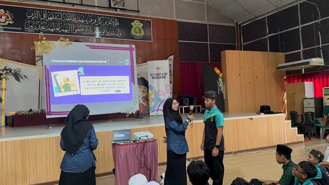 Pelajar juga turut bersama-sama di dalam beberapa aktiviti interaktif yang dijalankan bagi meningkatkan kefahaman mereka, disusuli sesi soal jawab kuiz yang berlangsung dengan penuh keterlibatan.